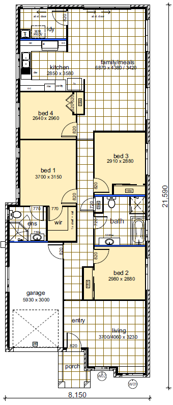 Great first home with non standard garage depth and 4 bedrooms. Suits narrow blocks and can be zero lotted. Open plan family / meals with separate living upon entry.