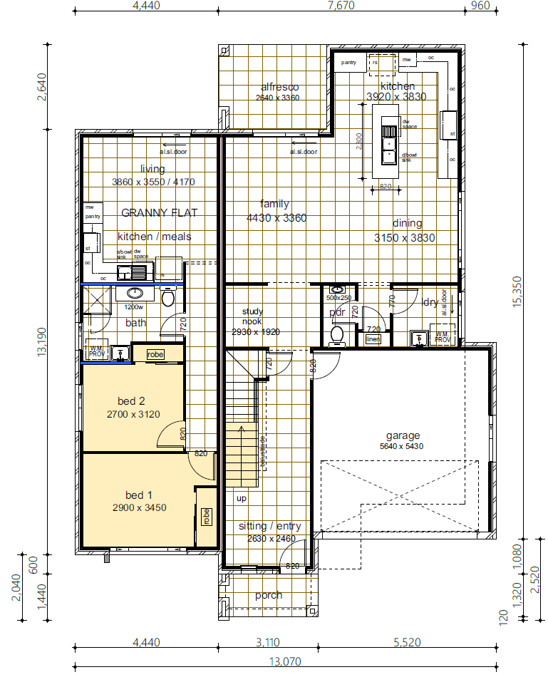 4 Bedroom living with double garage and attached granny flat all in the one contemporary styled façade and home. As a stepping stone for a new home, luxury separate living area for older members of your family or just looking to up the value of your home with an attached rental, the Marbella series designs provide great investment for the future whichever way you prefer. Granny flat designs can be interchangeable with other Marbella series designs.
